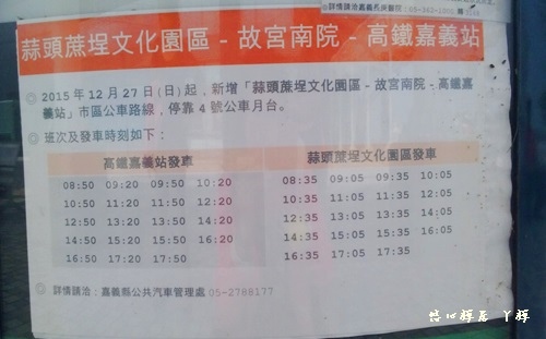 蒜頭蔗埕文化園區(蒜頭糖廠)-故宮南院-高鐵嘉義站,這路線是循環,每30分鐘一班車,搭一次全票24塊,半票12塊,可以刷悠遊卡有優惠。